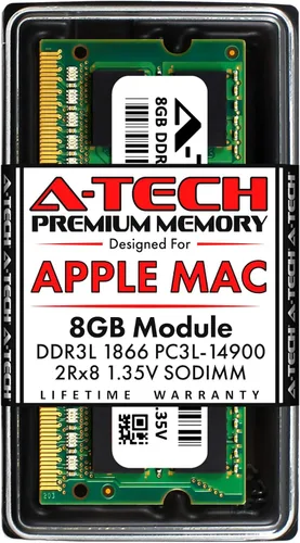 Módulo de 8 GB (1 x 8 GB) | DDR3/DDR3L 1866 MHz / 1867 MHz (PC3L-14900 / PC3L-14900S) | DDR3L SO-DIMM (204 pines) | Sin ECC sin búfer | 2Rx8 - Doble rango x8 | 1 .35 V - DDR3 bajo voltaje (puede funcionar a 1.35V o 1.5V) Compatible con iMac finales de 2015 (Retina 5K, 27 pulgadas) | ID del modelo: iMac17,1 | Números de pieza: MK462LL/A, MK472LL/A, MK482LL/A Maximiza el rendimiento de su sistema al acelerar los tiempos de carga, aumentar la capacidad de respuesta y mejorar la capacidad de soportar mayores cargas de trabajo Todos los módulos se someten a pruebas de garantía de calidad para garantizar un rendimiento confiable y confiable A-Tech proporciona una garantía de por vida para todos los pedidos y ofrece soporte técnico gratuito con sede en Estados Unidos antes, durante y después de su compra
