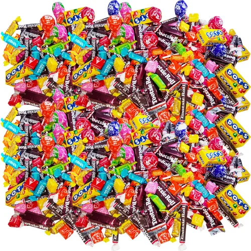 Curada por Assortit: Disfruta de una sabrosa mezcla de dulces afrutados y de chocolate, con masticables de frutas Tootsie Roll, mosquitos de chocolate, Starburst, Dots, y Pops. Envuelto individualmente y empaquetado en una bolsa de la marca Assortit de 9.5 libras, perfecta para compartir, fiestas y piñatas Gran variedad: incluye 17 variedades de dulces, incluyendo 4 sabores de Tootsie Pops clásicos, 5 sabores de Tootsie Roll Fruit Chews, Chocolate Tootsie Roll Midges, Rollos largos y barras, 4 sabores de Starburst original y mini cajas de gotas de goma Dots Envuelto individualmente: cada pieza de caramelo está envuelta individualmente para frescura e higiene. Una opción segura para dulces de Halloween, piñatas de cumpleaños y tazones de dulces Frescura garantizada: nuestros surtidos dulces están bien empaquetados en bolsas de plástico herméticas de calidad premium para garantizar la máxima frescura para su surtido de dulces. Sin maní ni gluten: disfruta de bocadillos sin preocupaciones para ti y tus hijos. Cada pieza de caramelo es libre de maní, sin gluten, y está hecha en una instalación sin nueces de árbol. VALOR A GRANEL: Nuestros surtidos de dulces están empaquetados a granel para que podamos compartir un gran valor con nuestros clientes. Dado que empaquetamos a granel, es posible que algunas variedades de dulces no estén presentes en cantidades uniformes.