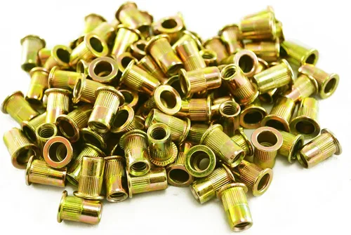 Paquete de 100 tuercas remachadoras de acero moleteado chapado en zinc de alta calidad para uso con pistolas de fijación de tuercas remachadoras neumáticas serie prn Astro, así como Astro 1427 y 1442 fijadores de tuercas remachadoras manuales. También es compatible con herramientas estándar de ajuste de tuercas remachadas.