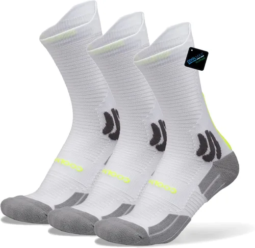 BRISIRA Coolmax - Calcetines de compresión de bambú para correr, 3 pares, control de olores atléticos, amortiguadores de senderismo, con pestaña sin