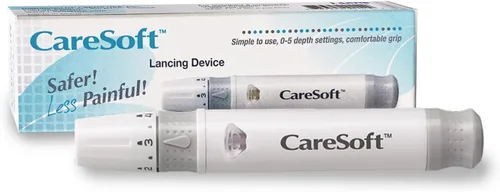 El dispositivo de punción CareSoft está diseñado para ser utilizado con lancetas para un muestreo de sangre capilar fácil e indoloro. Este dispositivo de punción ofrece 5 ajustes de profundidad para que elijas lo que mejor te convenga. Este dispositivo de punción es compatible con CareSens Lancets y la mayoría de las otras lancetas.