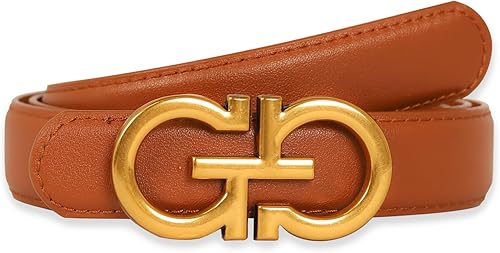 Cinturón de cuero clásico con hebilla de metal para mujer con vestido de jeans