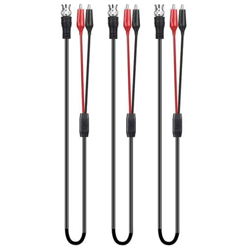 Longitud de la línea: 36.2 in, rango de apertura de clip de cocodrilo: 0.354 in / 0.36 pulgadas Color: rojo, negro Tipo de conector: BNC + clip de cocodrilo doble Material: alambre de cobre, metal Contenido del Paquete: 3 cables de prueba de clip de cocodrilo BNC