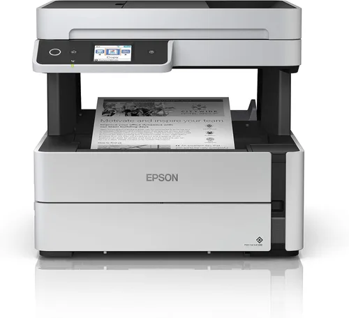 Procesa trabajos de impresión y copia con esta impresora monocromática Epson EcoTank Supertank. El diseño sin cartuchos con un tanque de tinta de gran tamaño ofrece un fácil mantenimiento, mientras que una bandeja de papel de 250 hojas y ADF de 35 páginas admiten escaneo y fax sin esfuerzo. Esta impresora monocromática Epson EcoTank Supertank funciona con la tecnología de impresión PrecisionCore para texto y gráficos nítidos, y la pantalla táctil a color de 2.4 pulgadas proporciona un funcionamiento intuitivo. Las redes cableadas e inalámbricas permiten una conexión completa del grupo de trabajo. Imprime 20 páginas por minuto (ppm) (ISO) en negro. Resolución de hasta 1200 x 2400 ppp para gráficos nítidos. Copia hasta 17 ipm con la copiadora plana y 14 ipm con el ADF.