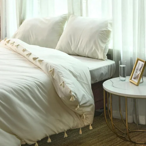 Paquete económico: esta funda de edredón blanca tamaño Queen es un paquete económico de 2 fundas de almohada (20 x 26 pulgadas) y 1 funda de edredón (90 x 90 pulgadas). Ten en cuenta que el edredón o cualquier tipo de relleno o sábanas no están incluidos. El juego de funda de edredón tamaño Queen viene con 8 lazos en las esquinas para asegurar el edredón y evitar que tu edredón se amontone. La funda de almohada viene con botones para asegurar los rellenos de almohada en su lugar. Tacto suave: disfruta de la suavidad extra y da a tu decoración bohemia una sensación acogedora con esta funda de edredón de lino tamaño Queen que está hecha en algodón puro. El juego de cama tamaño Queen es transpirable y ligero, lo que lo convierte en la solución perfecta para un sueño profundo. Diseño de alta calidad: esta funda de edredón de algodón Queen le dará a tu dormitorio de granja una actualización bohemia moderna. Los tonos de color sutiles y neutros de esta funda de edredón de algodón Queen complementarán fácilmente tu configuración interior. Regalo perfecto: dale a tus seres queridos un maravilloso regalo de comodidad con esta funda de edredón de algodón tamaño Queen. Las fundas de edredón Queen son un regalo ideal para todas las ocasiones, desde inauguración de la casa, aniversarios, cumpleaños, incluso Pascua, Día de la Madre, Día del Padre, Acción de Gracias, Navidad, Año Nuevo, etc. Cuidado de lavado: la sensación de capitoné de la suave funda de edredón Queen hace que sea duradera ya que no se decolora. Lavar a máquina esta funda de edredón de algodón por separado en agua fría en un ciclo suave y secar en secadora o secar en secadora a baja temperatura.