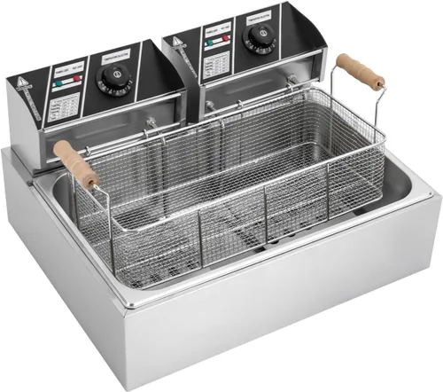 Calentamiento rápido: con una potencia de 1.7KW+1.7KW y tubos de calefacción en forma de U, la temperatura del aceite puede elevarse rápidamente a la temperatura establecida, haciendo que el proceso de cocción sea más eficiente y reduciendo el tiempo de espera del cliente. Control de temperatura preciso: Las sondas de temperatura en los tubos de calefacción pueden detectar con precisión la temperatura, de modo que el sistema de control de temperatura pueda controlar la temperatura dentro del rango establecido (140-392 ℉), reduciendo la ocurrencia de sobrecocido. Gran capacidad: incluye una gran cesta para freír y 2 cestas pequeñas para freír, lo que le permite cocinar varios alimentos a la vez según el tiempo de cocción y la temperatura de los diferentes ingredientes. Diseño cuidadoso: los tableros de división de residuos pueden evitar que los residuos se peguen al tubo de calentamiento, y hay una distancia de 0.98 pulgadas entre el tubo de calentamiento y la parte inferior de la olla, lo que puede reducir la adherencia de la olla. Protector de seguridad: el limitador de temperatura incorporado limitará la temperatura a 536℉, una vez que supere, el producto cortará automáticamente la energía, haciéndolo más seguro de usar.