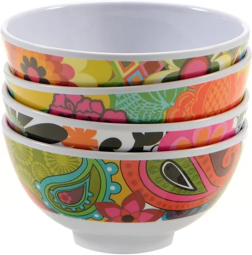 Manténgase a la vanguardia con un aspecto fresco de French Bull. Este juego de cuatro mini cuencos de melamina en diseños florales reinventa un básico diario con su brillante patrón de flores multicolores. Construidos con melamina ligera de alta calidad, estos pequeños cuencos son inastillables y resistentes al calor hasta 365 grados F. La superficie brillante y esmaltada es resistente a los arañazos y no absorbente. Su estilo y durabilidad los hacen perfectos para entretenimiento en interiores o exteriores, aptos para niños y aptos para lavavajillas. Todas las piezas no son tóxicas y no contienen BPA. Coordina tu look o mezcla y combina juguetonamente con la miríada de otros patrones y sólidos vivos de French Bull. French Bull: un aspecto fresco para un estilo de vida contemporáneo. 4 cuencos incluidos.