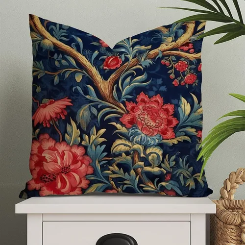 Funda de almohada estilo chino floral botánico azul marino, burdeos, dorado, funda de almohada asiática de 20 x 20 pulgadas, funda de almohada