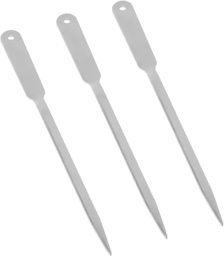 El paquete incluye: 3 cuchillos abrecartas Material: acero inoxidable; Color/Estilo: como se muestra; Tamaño: 9.1* 0.6 in/9.13* 0.63 pulgadas El cuchillo abrecartas es puntiagudo, fácil de insertar en el sobre sin dañar el contenido interior; elegante hoja similar a una espada, puedes cortar sobres rápida y suavemente; la hoja no es afilada por diseño por razones de seguridad, no te preocupes por cortar tus manos. Fácil de usar, simplemente inserta el abrecartas y tira hacia afuera para abrir el sobre de forma limpia. Lo suficientemente largo como para abrir la mayoría de los artículos rápidamente para ti, dándote una buena sensación de uso. Ideal para abrir cartas, correos, documentos sellados, paquetes, etc. El complemento perfecto para la oficina, el hogar y la escuela, también puede servir como regalo para enviar a tus amigos. Se pueden colocar en mesas de pasillo, escritorios, estantes, mostradores de recepción, almacenamiento de paquetes y muchos otros lugares. Satisface tus necesidades de apertura y aporta comodidad a tu vida diaria y trabajo. Y se puede utilizar como decoración y pisapapeles en tu escritorio. Hay un agujero en el mango de este abrelatas, se puede colgar fácilmente cuando no esté en uso. También puedes envolver y atar cintas y cordeles alrededor del mango para un aspecto agradable y un agarre más cómodo.