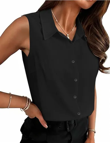Camisetas sin mangas de calidad: hechas de tela de primera calidad 92% poliéster y 8% elastano, suave al tacto, ligera y cómoda Camisas clásicas con cuello - Cuello abierto, cierre frontal con botones, dobladillo curvado, diseño de corte limpio en el pecho para añadir una mejora sin esfuerzo a tu silueta y aportar un toque profesional a cualquier atuendo Versátil Camisa Abotonada - Puedes usarla de manera casual con jeans, pantalones cortos, mezclilla para un look casual relajado pero pulido, o vestirla elegante con faldas, pantalones o pantalones de vestir para un look elegante y profesional. Doblar para un aspecto elegante casual mientras que dejar sin doblar para un aspecto más casual de negocios Estilo básico para todo el año - La característica sin mangas aumenta su versatilidad. Se puede usar debajo de un suéter, blazer, traje, chaqueta, cárdigan para primavera, otoño o invierno, o solo para verano. Adecuado para salir, citas, trabajo, escuela, oficina, negocios, vacaciones, vacaciones Cuidado fácil - Un lavado rápido y secado en bajo calor o secado colgado se encargará de las arrugas y la estática. Hecho de tela duradera que resiste el desgaste frecuente y el lavado sin perder su forma o color