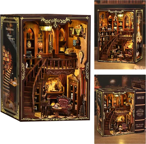 Encantadores kits de rincón de libros para los amantes de los libros: aquí puedes disfrutar de tu tiempo de lectura. Sumérgete en un pequeño mundo con nuestro rincón de libros de la biblioteca. El antiguo rincón de libros de casa de muñecas de la biblioteca de rimas con luz cálida y kit de escena en miniatura, cuenta con muchas decoraciones intrincadas y delicadas. El ingenioso diseño abierto resalta la delicadeza de la arquitectura y fomenta una suave cascada de luz. ¡Construyamos juntos tu sala de lectura exclusiva! Divertidos rincones de libros de bricolaje: este es un kit de rincón de libros para adultos, es una combinación de diversión y ocio para terminar este kit de manualidades de rincón de libros. El rincón de madera 3D incluye 333 piezas, fácil de montar y amigable para principiantes y adolescentes que disfrutan de la artesanía y aman un toque de fantasía. Se tarda alrededor de 3-4 horas para construir el kit en miniatura. Casi todas las escenas que tienes que crear para obtener un gran sentido de logro. Adecuado para personas mayores de 14 años Kit de decoración de estantería de casa de muñecas de alta calidad: hecho de paneles de madera de alta calidad, cortados con precisión, es resistente, duradero y fácil de montar. Este kit de rincón de libros de bricolaje la mayoría de las piezas simplemente se unen en lugar de pegarse. También hay instrucciones paso a paso en color para seguirlas cuando se configura. Cuenta con un interruptor táctil para un fácil control de iluminación, se verá llamativo en tu hogar Exquisitas decoraciones para el hogar: cada detalle de la casa en miniatura ha sido cuidadosamente diseñado. También puedes añadir mini muñecas o cualquier otra miniatura como quieras. El kit de rompecabezas de madera en miniatura de rincón de libros en 3D de bricolaje es más que un proyecto de esquina de libro de bricolaje, también una exquisita colección y decoración de habitación. Este kit de casa en miniatura de madera 3D es un diorama funcional y decoración de estantería, perfecto para los amantes de los libros y entusiastas de la fantasía Elección de regalo única: los rincones de libros en miniatura son un regalo perfecto para los amantes de los libros, entusiastas de los rompecabezas, familiares o amigos, parejas, hombres y mujeres que tienen pasatiempos. El rompecabezas de madera 3D montado en miniatura se puede utilizar para decoración de estanterías, decoración del hogar, decoración de estante de libros, sujetalibros creativos, etc. ¿Quién podría rechazar un regalo tan creativo y maravilloso? Puede ser como regalo de Navidad, regalo de cumpleaños, regalo del día de la madre, regalos del día del padre, regalo de Año Nuevo, regalo de San Valentín Consejos: ten en cuenta que no es un producto terminado, necesitas montarlo. Tendrás que proporcionar pegamento líquido de silicona y 2 pilas AAA por ti mismo, ya que las regulaciones de transporte aéreo prohíben su inclusión. Si encuentras algún problema durante el montaje, no dudes en comunicarte con ella. Lo resolveremos lo antes posible