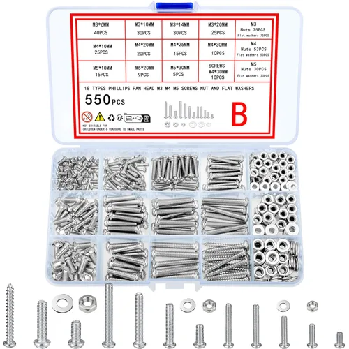 wugongshan Juego de 550 piezas de tornillos, pernos y tuercas, tornillos y tuercas métricos de máquina y arandelas planas, juegos de pernos