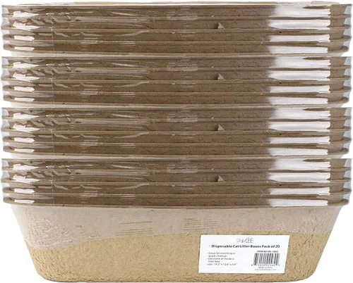 Juego de 20 cajas de arena desechables. Mide 16.5 x 12 x 4 pulgadas Estas bandejas de arena desechables facilitan el viaje, la limpieza y el tiempo del baño. No te preocupes por limpiar la caja de arena de tu gato cuando puedes desechar todo el asunto Cajas higiénicas para cada vez que su mascota necesite usar el baño. Perfecto para viajar y cuando estás en movimiento. Hecho de papel reciclado biodegradable.