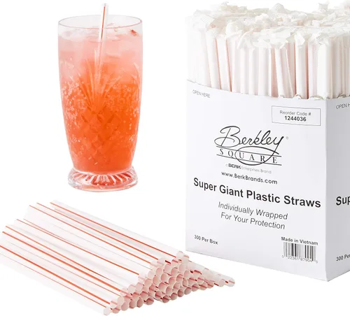 El tamaño jumbo es ideal para bebidas más gruesas. Estas pajitas extra anchas no se colapsan ni se obstruyen, por lo que puedes disfrutar fácilmente de los batidos más gruesos y las margaritas congeladas más frías. El diámetro gigante de 5/16 pulgadas es más grande que las pajitas estándar. Envuelto individualmente para saneamiento y transporte. Mantén a tu familia, invitados o clientes seguros y saludables con nuestro paquete a granel de pajitas envueltas individualmente. Ideal para viajes, también: siempre ten una pajita de plástico limpia a mano. Satisfacción asegurada de por vida. Respaldamos todos nuestros artículos de cocina y suministros para restaurantes. Si en algún momento no estás 100% contento, solo envíanos un correo electrónico y prometemos hacerlo bien Plástico duradero y desechable que no se rompe ni se disuelve. Nuestras pajitas son libres de BPA, de grado alimenticio y aprobadas por restaurantes. Las pajitas altas de plástico son lo suficientemente resistentes para bebidas gruesas y no se disuelven en tu bebida o boca. Mejora fácilmente cualquier bebida o evento. ¡Di adiós a las aburridas tazas viejas! Tu próxima fiesta de cumpleaños o barbacoa en el patio trasero sorprenderá gracias a estas elegantes pajitas. Además, nuestros paquetes a granel incluyen suficientes pajitas incluso para la fiesta más grande.