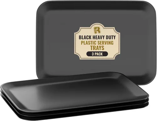 Pregunta sugerida sobre Paquete de 3 bandejas de plástico negro para servir – Bandeja negra de 8 x 11 pulgadas – Bandejas de postre resistentes para alimentos – Bandejas ¿Qué incluye exactamente este set?