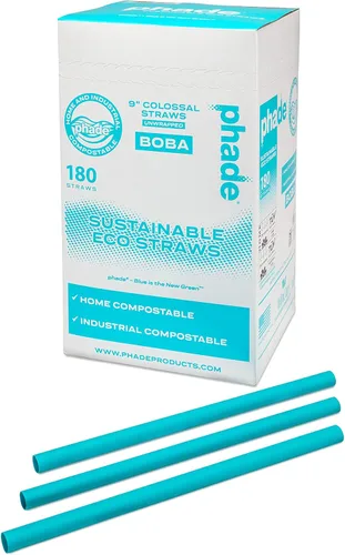 phade Pajitas Boba colosales ecológicas de 9.0 pulgadas para batidos y batidos, sin envolver, 180 unidades, compostables, biodegradables marinos,