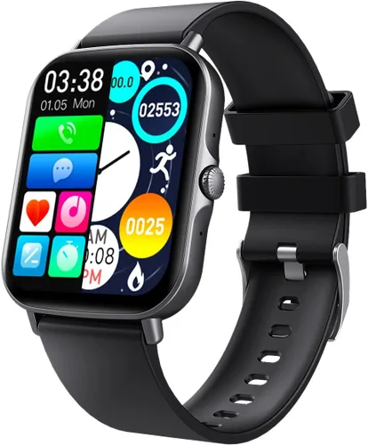 Relojes inteligentes para hombre y mujer para Android 4.4, iOS 8.0 con pantalla táctil completa HD de 1.69 pulgadas con modo de pantalla dividida, recepción de llamadas Bluetooth, registro de presión arterial y oxígeno en sangre, monitor de frecuencia cardíaca y sueño, imágenes de fondo personalizadas gratuitas, mensaje de empuje, rastreador de fitness, rastreador de actividad, podómetro, etc. Descripción general de la función - Monitor de salud: monitor de frecuencia cardíaca dinámica de 24 horas y alarma y monitor de sueño - Presión arterial y registro de oxígeno en sangre: los datos de salud del historial podrían sincronizarse con la aplicación en el teléfono - Recepción y marcación de llamadas Bluetooth: Después de conectarse al teléfono móvil, las llamadas telefónicas se pueden responder y realizar directamente en el reloj - Recordatorio de notificación: el reloj inteligente recibirá mensajes push del teléfono como llamadas telefónicas, SMS, correo electrónico, SNS (twitter, whatsapp, facebook, ins, etc.) - Multifunción para deportes: cronómetro, podómetro y cálculo de calorías y distancia en modos multideporte - Funciones diarias: elevar para despertar, control remoto de fotografía del teléfono, control del reproductor de música, ajustes de alarma, pronóstico del tiempo, recordatorio sedentario y más funciones esperando su exploración - Imágenes de fondo personalizadas gratuitas: el reloj inteligente ofrece múltiples imágenes de dial para elegir Información de especificación Tamaño de pantalla: 1.69 in HD pantalla táctil completa Sistema de soporte: Android 4.4, iOS 8.0 y superior Capacidad de la batería: 220 mAh Tiempo de carga: 2 horas Duración de la batería: 6-7 días Longitud de la correa: 10.433 in Peso del reloj: 1.23 oz Material de la correa: silicona. Factor de impermeabilidad: nivel de impermeabilidad IP67.