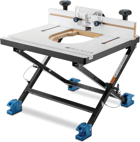 ¡Esto incluye solo la mesa de enrutador! La placa de enrutador no está incluida (se vende por separado). Routadora de mesa convertible de Rockler: La router de mesa convertible de Rockler es perfecta para usarla en tu mesa de trabajo o en la parte trasera de tu camión, luego dóblala y guárdala debajo de la mesa o en la cabina del camión. Estas mesas de trabajo para base de taller se convierten rápidamente de independientes a montadas en la pared: los pines de liberación rápida bloquean las patas en su lugar. Cuatro modos en una mesa: La base plegable de nuestras mesas de enrutador de mesa convertibles para carpintería se puede reconfigurar rápidamente en cuatro modos para uso de mesa de trabajo, uso montado en pared, o plegada para almacenamiento o transporte. ¿Se ajustará mi enrutador? Nuestra mesa de router portátil convertible aceptará los routers más compactos y de tamaño mediano. Esta mesa de carpintería no acepta fresadoras de inmersión o fresadoras grandes como la Porter-Cable de 3-1/4HP y no acepta la fresadora de acabado de laminado Porter-Cable PCE6430, debido a su diseño de base único. Compacto y portátil: estas herramientas de carpintería son compactas y portátiles, pero con todas las funciones, la valla de mesa de enrutador de sobremesa es ideal para pequeñas tiendas y uso en el lugar de trabajo. Triangule la base y montájela en la pared y úsela en su banco de trabajo o en la puerta trasera de su camión, luego dóblela y recórtala. ¿Qué incluye? Nuestra mesa de trabajo para enrutador de sobremesa incluye (1) Parte superior de mesa de enrutador, (1) Cerca con sub-caras de MDF, (1) Base metálica convertible, (1) Protector de broca, (1) Puerto de polvo de 2-1/2 (La placa de enrutador se vende por separado)