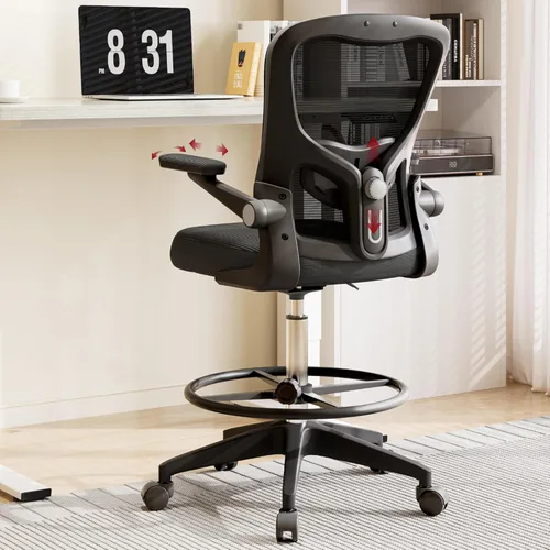 SANODESK Silla ergonómica de dibujo, silla de escritorio de pie con malla transpirable 2D, soporte lumbar 3D, reposabrazos abatible y reposapiés,