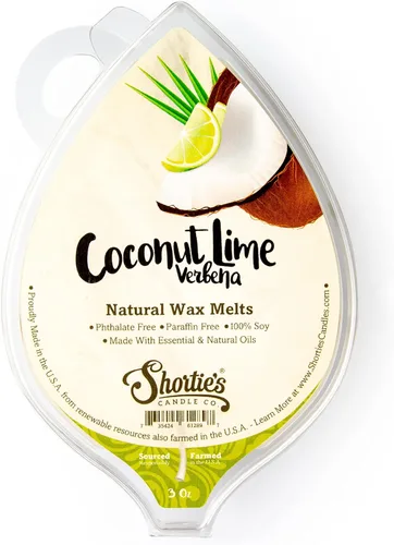 Shortie's Candle Company Coconut Lime Verbena - Cera de soja natural para derretir – 1 barra altamente perfumada de 3 onzas – Fabricado con 100%