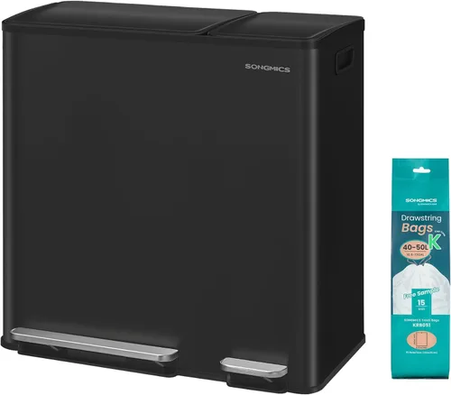 Smarter Sorting: This dual trash can features 2 compartments of different volumes (13 + 5.3 gallons) to balance large capacity with daily sorting of household waste and recycling, ideal for busy kitchens or large families Flexible Opening & Soft Close: Step on the pedal for hygienic, hands-free opening, or lift the lid to 90° to keep it open while you prepare food. The soft-close lid lets the garbage can shut gently and quietly Heavy-Duty: This modern trash bin features a stainless steel body that's sturdy and long-lasting, plus a smudge-resistant surface and a solid pedal that stands up to daily use Easy Emptying & Secured Bags: Each inner bucket lifts out for quick emptying, and built-in bag holes help secure trash bags in place so they don't slip, keeping the kitchen trash can neat and tidy Starter Bags Included: Comes with 15 13-gallon (50 L) trash bags coded K, designed to fit the large compartment, helping get your trash can ready for use from day one