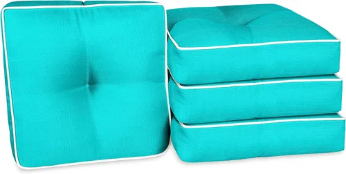 Juego de cojines de asiento de mimbre de 4 piezas: complemento perfecto para cualquier espacio de salón al aire libre y mejora instantáneamente la configuración actual de tus muebles de patio Tejido resistente a la decoloración: hecho de hilos de poliéster duraderos teñidos en solución que están protegidos contra los rayos UV y resistentes a la decoloración para un color vibrante Relleno de fibra de poliéster: relleno de fibra de poliéster soplada para un soporte suave a medio Diseño versátil: color turquesa clásico que combina con cualquier decoración Tamaño ideal: incluye 4 cojines de asiento de mimbre que miden aproximadamente 18 x 19 x 5 pulgadas cada uno y se adaptan a la mayoría de los muebles (las medidas pueden variar hasta 2 pulgadas ya que el artículo está hecho a mano)