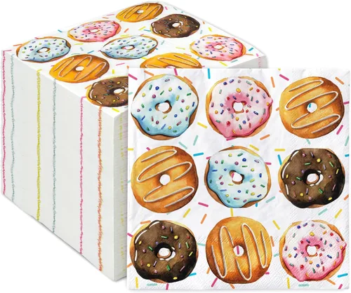 Lo que obtendrás: 80 hojas de servilletas de papel están contenidas en el juego, diseños delicados que lo hacen adecuado para el uso en fiestas y mesas de comedor, y gran cantidad que son suficientes para satisfacer tus diferentes necesidades. Diseño creativo: estampadas con rosquillas coloridas surtidas que se ven sabrosas, nuestras servilletas de papel ayudan a enriquecer un ambiente más dulce para tu fiesta. Material seguro: hecho de papel de buena calidad, suave y degradable, no es fácil de rasgar, y con 2 capas que los hace más absorbentes, manteniendo tus platos y mesas limpios mientras son completamente seguros para el medio ambiente. Tamaño grande: nuestra servilleta de mano mide aproximadamente 6.5 x 6.5 pulgadas cuando está plegada, lo que es adecuado para la mesa y otras ocasiones, para decorar la mesa de fiesta y ayudarte a liberar de la carga de la limpieza al mismo tiempo. Amplia aplicación: adecuado para fiestas temáticas de donas, baby shower, fiesta de cumpleaños y otras ocasiones, ideal para comedor, limpieza de manos, bebidas, etc., y también se puede utilizar como servilletas ordinarias para tu hogar.
