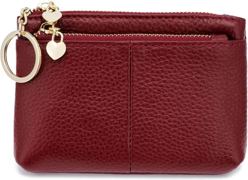 ZOOEASS Mini monedero con cremallera de cuero genuino para mujer, con llavero con triple cremallera, tarjetero