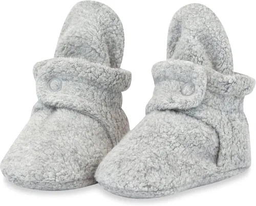 En Zutano, ante todo, somos padres y madres, por lo que entendemos lo importante que es para tu bebé tener ropa y accesorios con los que esté cómodo, seguro y adorable. La tela de calidad y los diseños intuitivos son nuestros sellos distintivos, y creemos que eso es lo que distingue a nuestros productos del resto de los artículos indispensables para recién nacidos del mercado. Nuestros botines de vellón Cozie están hechos con una mezcla de alta calidad de 70% algodón y poliéster y están totalmente forrados con algodón 100% orgánico para proteger la delicada piel de tu bebé. El innovador diseño de doble broche a presión con elástico suave ahorra tiempo y dinero a las madres y ayuda a mantener su cordura haciendo que sea casi imposible que el bebé se quite estos botines de sus pies. No más calcetines ni botines perdidos, no importa lo activo que sea tu bebé.Nuestros botines de vellón para bebés son el regalo perfecto para dar la bienvenida a un nuevo pequeño al mundo, lo que los convierte en el complemento perfecto para cualquier registro de regalos de baby shower. Estos botines de agarre para bebés son duraderos, cómodos y lindos. Se convertirán en un recuerdo familiar que se puede pasar de niño a niño o donar en buenas condiciones y limpios para beneficiar a otra familia.En 1989, Zutano fue fundada por Michael y Uli Belenky, padres primerizos que deseaban una amplia selección de ropa de bebé de alta calidad para su hija. Diseñados por Uli y entregados personalmente por Michael en su bicicleta, los productos Zutano encontraron su camino en las boutiques de Manhattan y finalmente en los corazones de los padres y madres de todas partes. En sus más de 30 años en el negocio, Zutano se ha convertido en una de las marcas de ropa y accesorios más conocidas de Estados Unidos para niños. Debemos gran parte de nuestro éxito a nuestros increíbles clientes que difunden la palabra de nuestra dedicación a la calidad y la funcionalidad en cada uno de nuestros productos únicos. Ya sea que colecciones nuestro arcoíris de colores o recibas unos bien cuidados de segunda mano, esperamos que nuestra ropa y accesorios para bebés hagan tu día un poco menos agitado.